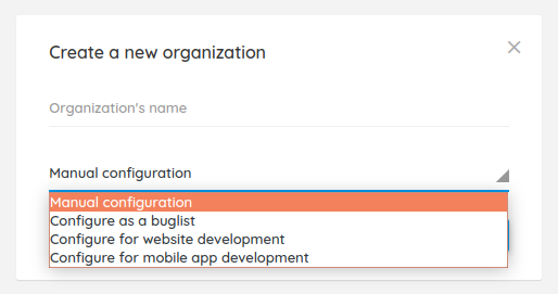 When you create an organization, you can choose to configure it entirely by hand, or use one of the proposed templates.