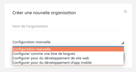 Quand vous créez une organisation, vous pouvez choisir de la configurer entièrement à la main, ou utiliser l'un des modèles proposés.